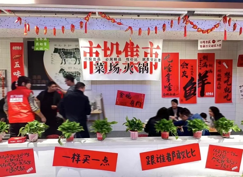 為全方位滿足廣大顧客菜市場吃火鍋體驗(yàn)需求,市投集市未來路市場設(shè)立火鍋專區(qū),引入火鍋品類商戶,現(xiàn)有商戶全員參加,免費(fèi)提供火鍋鍋底和餐具,顧客可根據(jù)個人喜好進(jìn)行搭配和調(diào)整,創(chuàng)造出豐富多樣的火鍋料理。