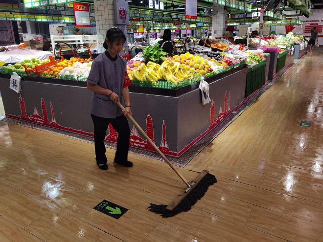 農(nóng)業(yè)公司安全小組人員立即啟動防汛安全應(yīng)急預(yù)案,對市場易積水點、漏水點、排水口進行檢查清理,做到積水及時排放,防止下水口堵塞、雨水積存,并鋪防水腳踏墊,全天候清掃保潔,豎立標識,引導(dǎo)市場商戶、購物群眾注意防滑安全。對容易出現(xiàn)水電火災(zāi)的插排、線路、交換點等進行防水處理,防止火災(zāi)、觸電現(xiàn)象發(fā)生,及時發(fā)布災(zāi)害預(yù)警信息和防災(zāi)避災(zāi)辦法到市場商戶群,督促各商戶從業(yè)者積極做好氣象災(zāi)害預(yù)防工作,做好市場必需品供應(yīng),保障惡劣天氣物價穩(wěn)定。